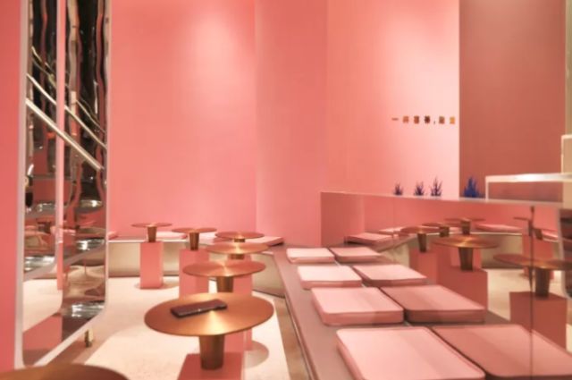 近年“千禧粉”潮流的兴起,这个颜色渐渐蔓延到各种店铺,尤其在茶饮店十分常见。像之前喜茶同样继续开出了第二家粉色店。