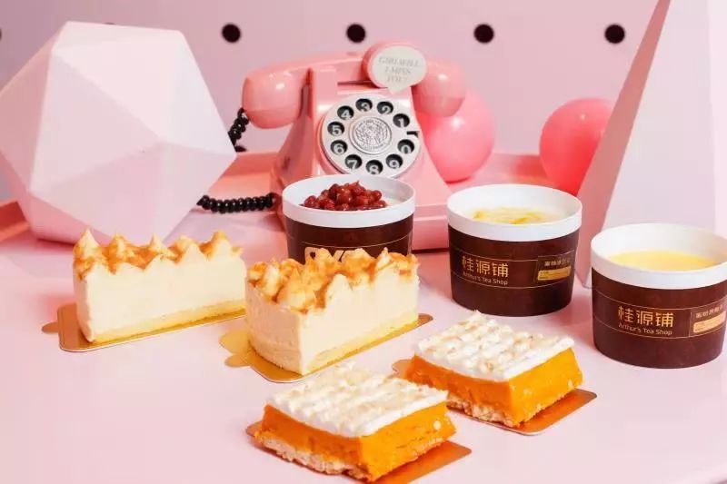 这家联名主题店是由桂源铺全权直营管理,饿了么提供设计及线上运营的协助。产品较桂源铺常规店有所不同,比如增加了烘焙甜品等。