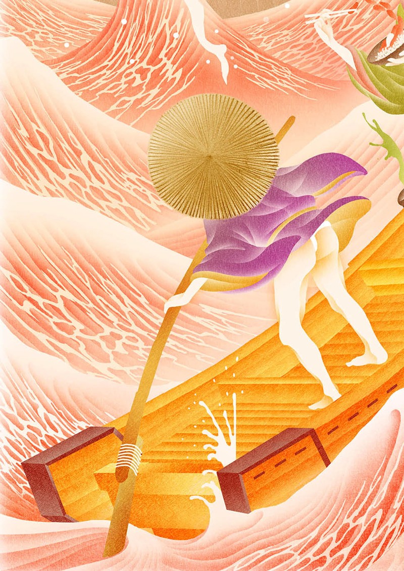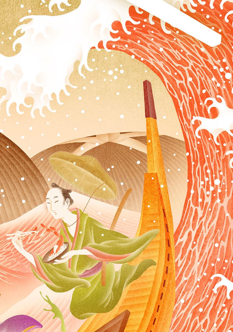将筷子置于海浪的尾巴以此来契合整体画面的主题