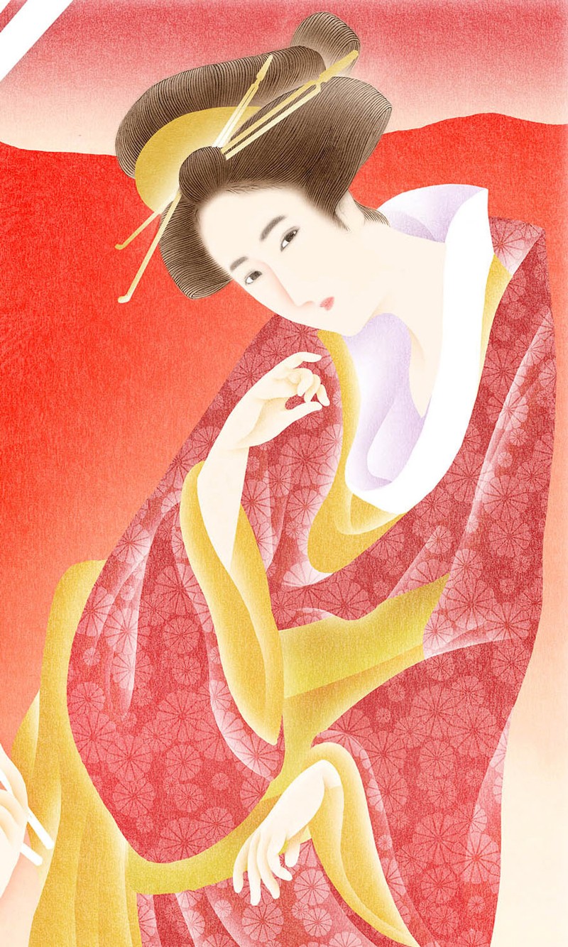 以此来衬托华丽鲜艳的和服