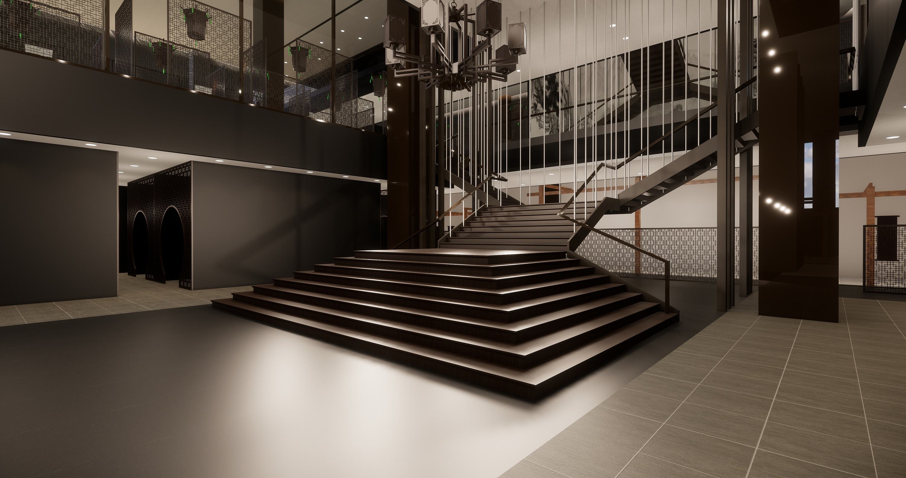 照明形态是创造餐饮环境气氛的重要手段,应重点利用光变化,如利用光的色彩、光的调子、光的层次等构成含蓄的光形图案。创造出丰富的环境氛围。