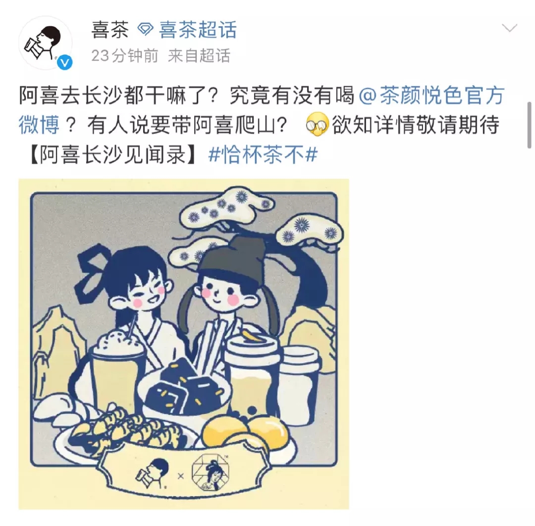 在微博上,“喜茶和茶颜悦色联名”的话题热度也一升再升,超百万阅读;话题讨论度上来了,自身曝光量增加了,吃瓜群众一波一波不请自来,花最少的钱,达到最好的效果。另一方面,给足了受众期待感。有时候两个你觉得不可能的品牌,出乎意料搞了一次联名,会让拓宽我们对他们的认知,从而对他们下一次合作产生期待。
