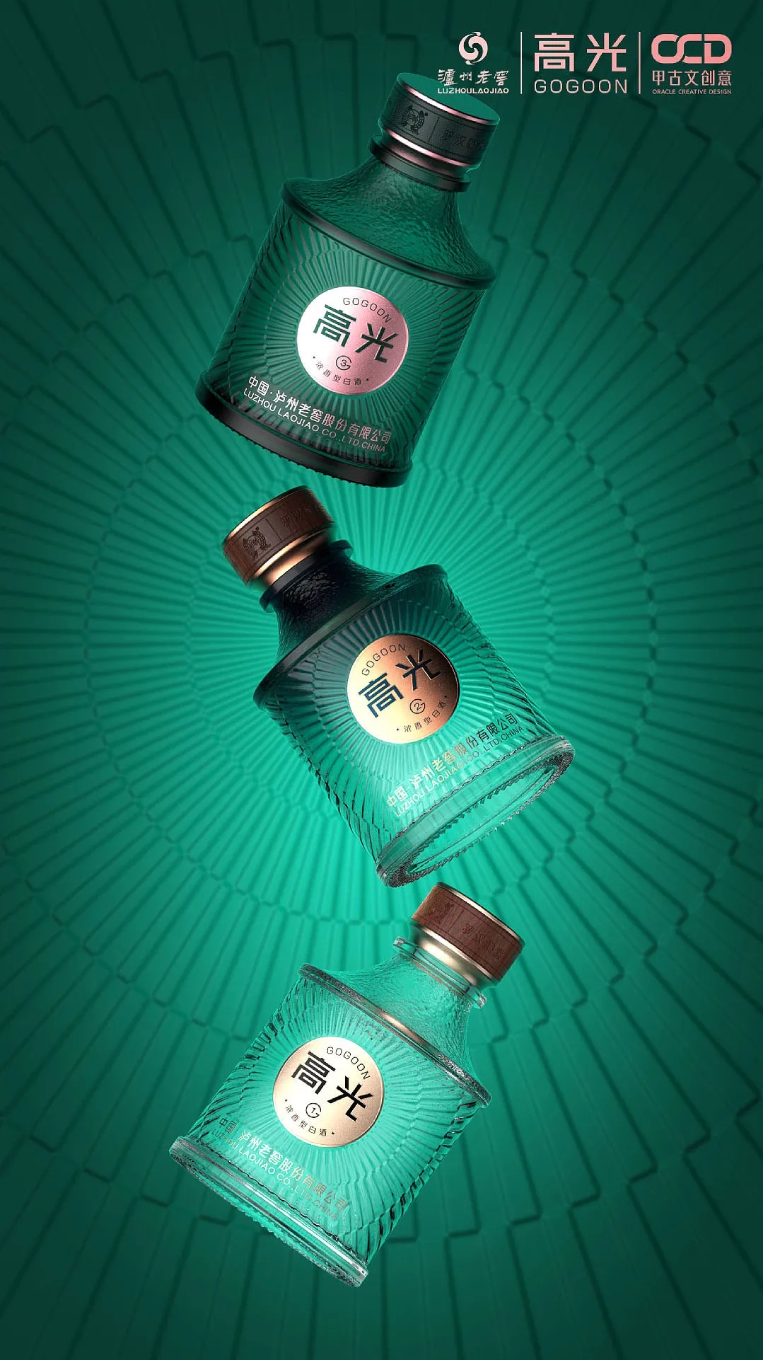 瓶标LOGO设计为圆形,主品名“高光”字体设计则拥有现代风格的切角,整体简约时尚。副品名 G1/G2/G3 区分由低到高不同价位,易于识别记忆。