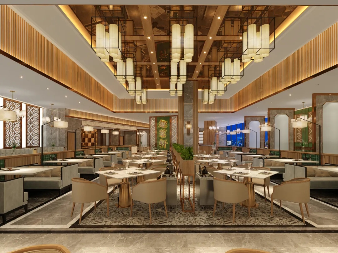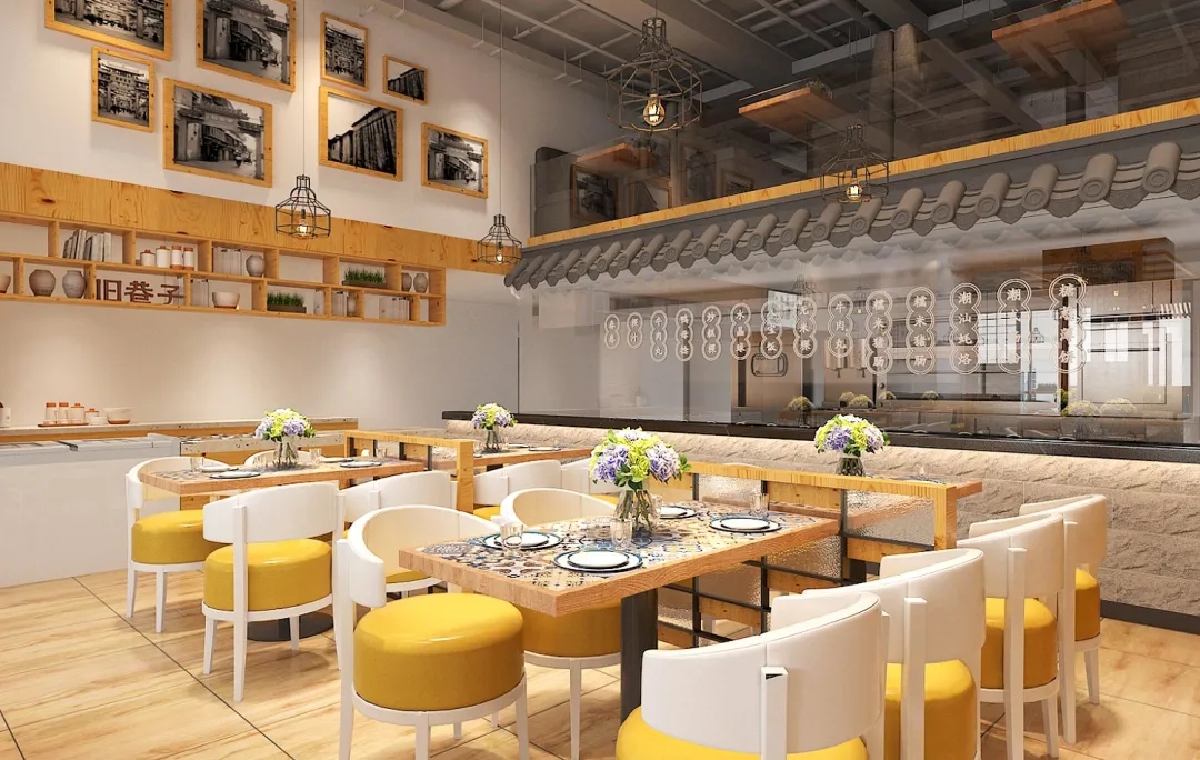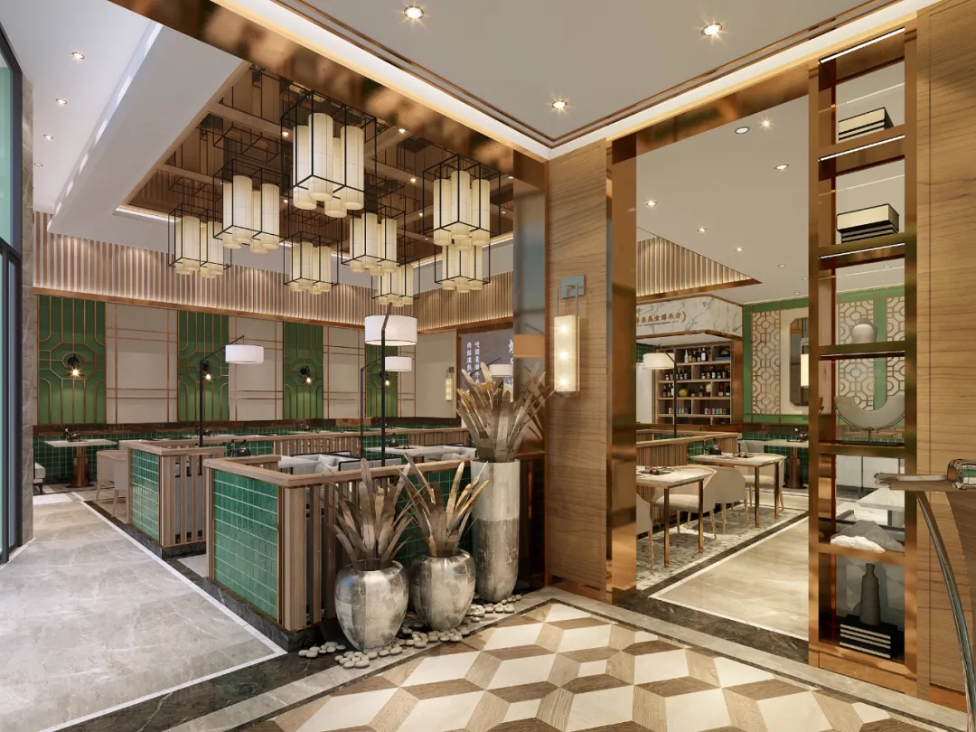 是古风与简约风的一种融合。没有太多风味突出的个性特色,讲求精致、简洁、留白的古典质感,兼顾考究的细节,给人以干净、舒心乃至轻奢的印象。无论是普通的小餐厅或是高端的主题餐厅均可采用,泛用性较好。