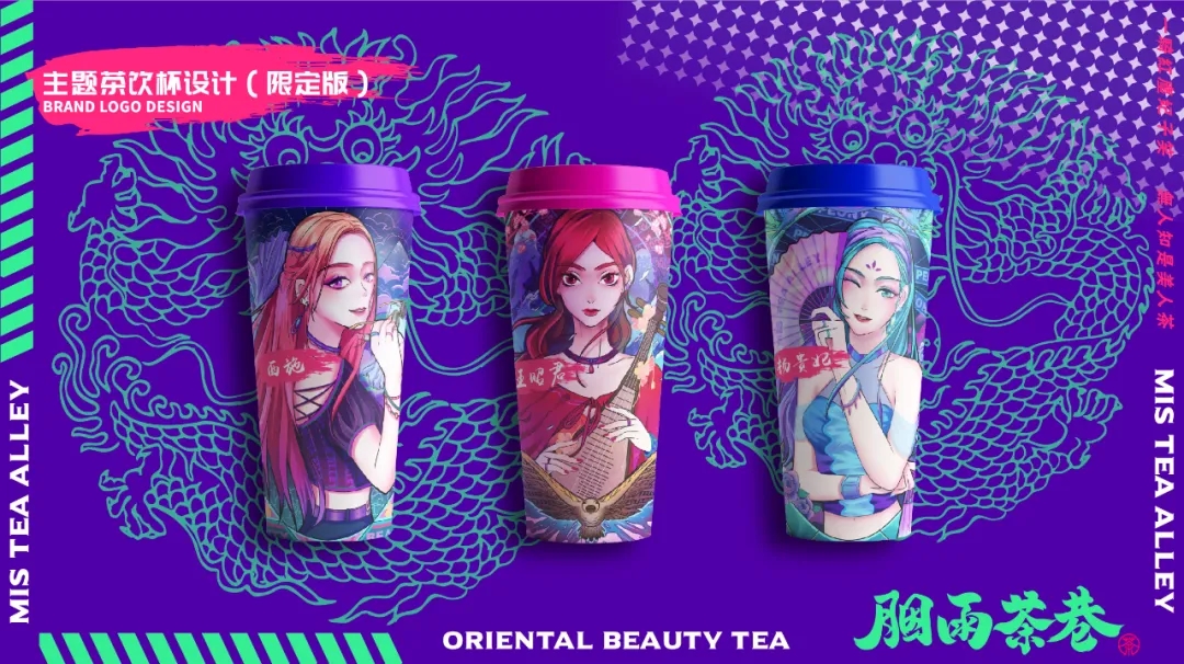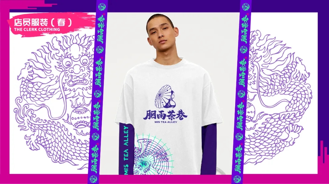 属于古风与快时尚的一种融合。这种风格以年轻消费者为主要目标客群,用复古经典的文化元素、新颖酷炫的设计表达,以及插画、艺术字、符号图形等形式,打造出和典型传统风格有一定区别的创意和调性,更显活跃、有趣、潮流而独具个性。