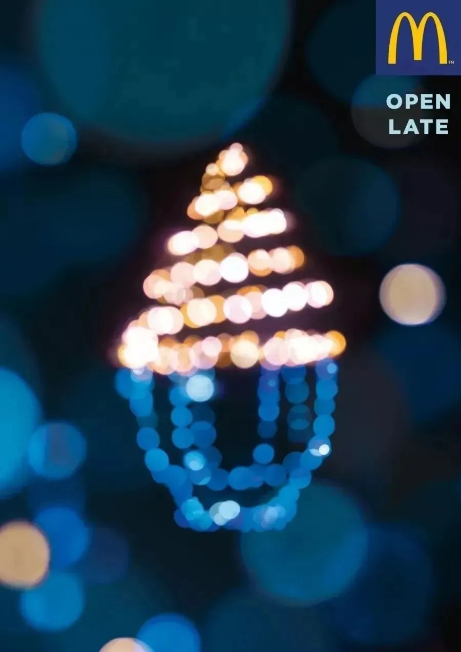 布达佩斯麦当劳——用延时摄影拍出的光线轨迹,构成产品造型,极具高速感、穿梭感、科技感,在浮光掠影中绽放精彩和暖意。