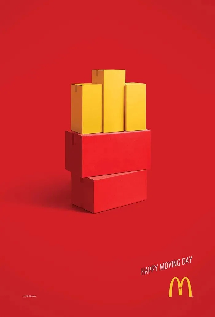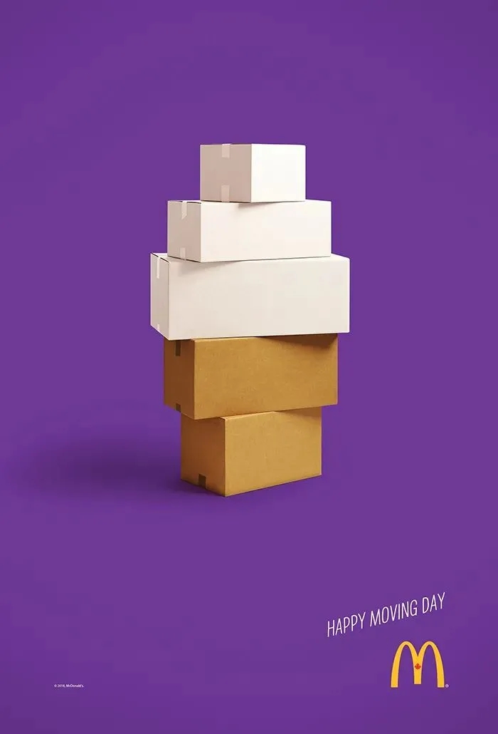 加拿大麦当劳——通过搬家收拾的箱子+自家产品造型的创意结合,庆祝魁北克每年7月1日的搬家日。