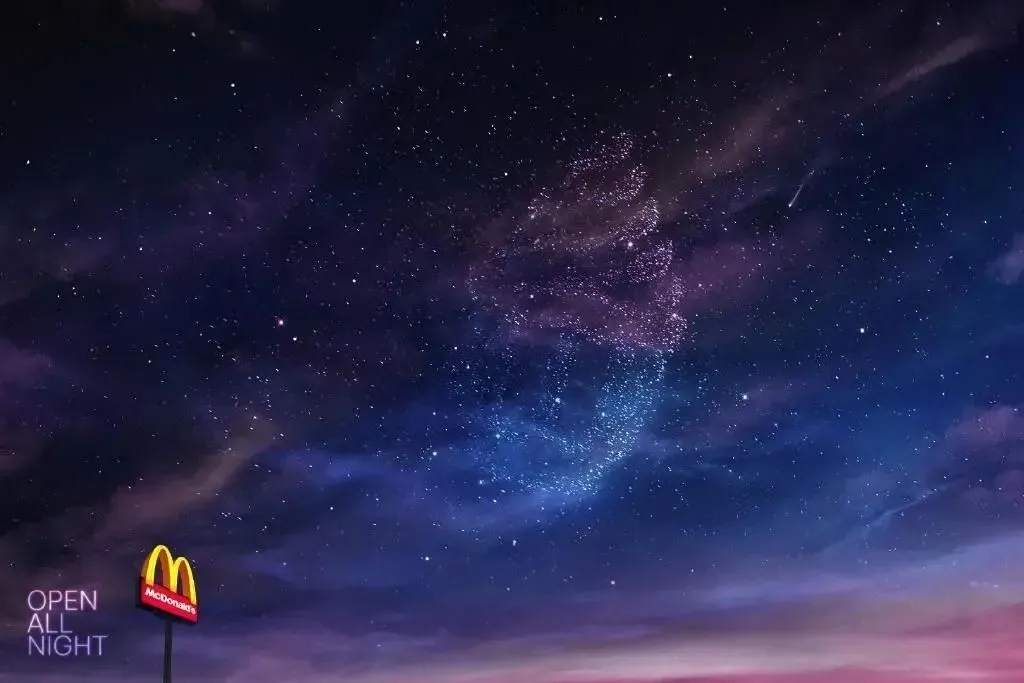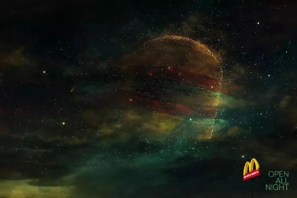 沙特麦当劳——把产品融入星空之中,化为璀璨闪耀,浪漫、瑰丽而诱人。