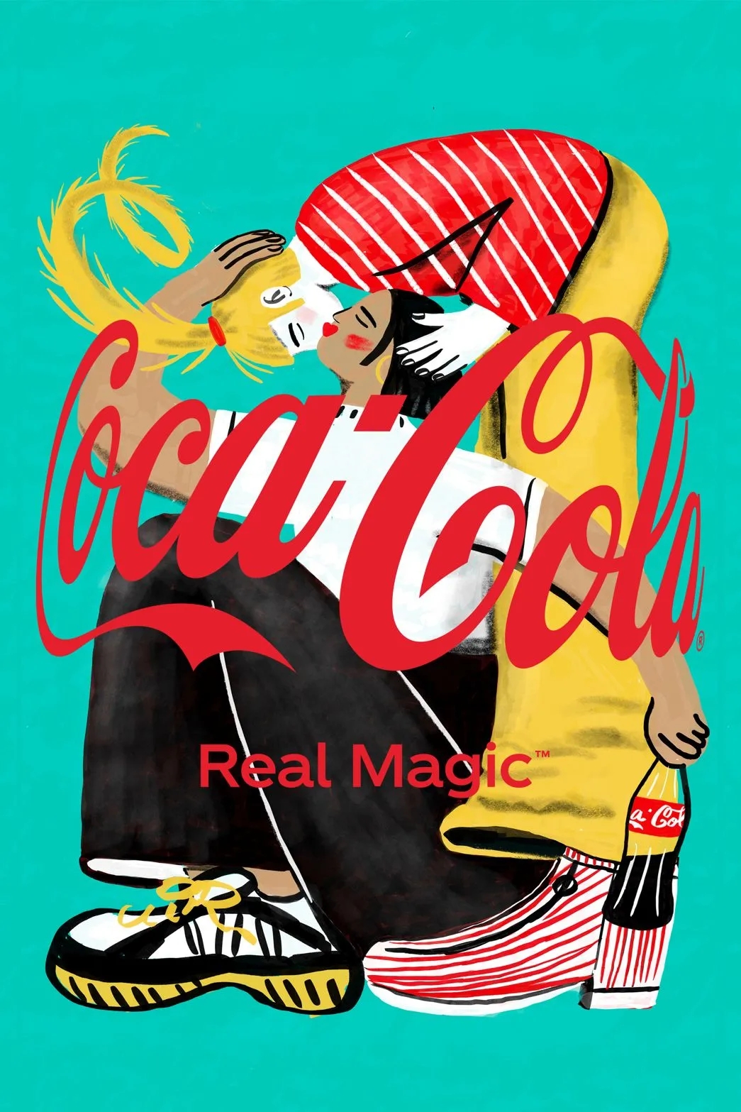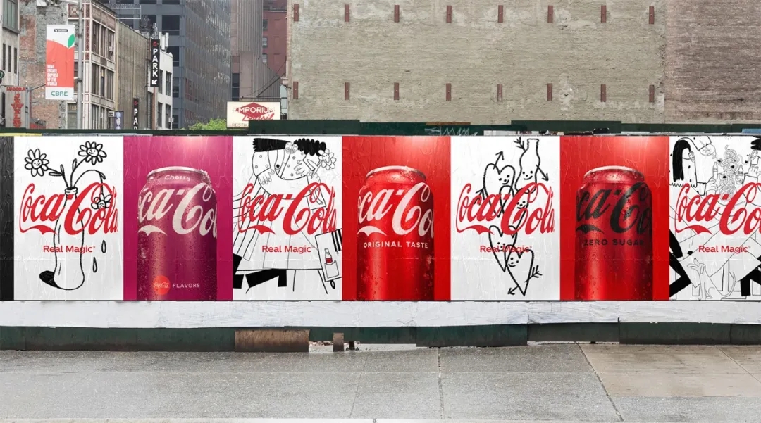 一提到可口可乐,大家都会浮现那个红色的波浪LOGO设计,确实太出名了。但是前不久,可口可乐迎来了全新视觉形象,将原来的LOGO设计经过压缩重整,以“拥抱”为概念,形成向内环抱的模样,并搭配新广告标语“Real Magic”,可口可乐释放出了品牌史上最风格多元的广告视觉。