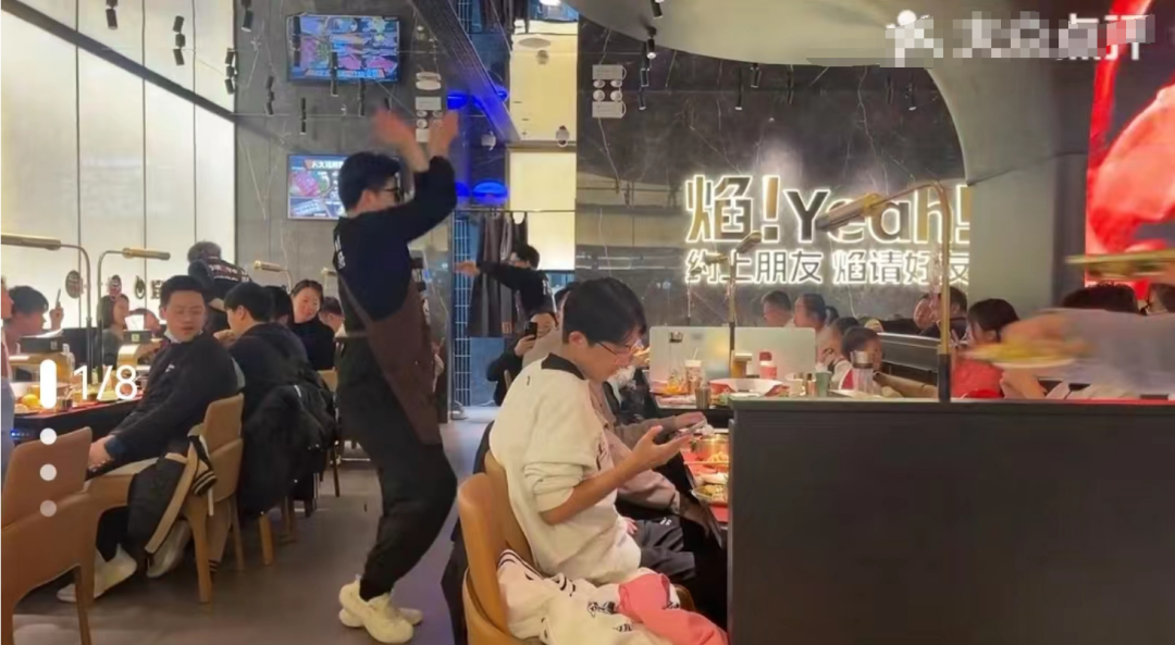餐饮空间大量运用液晶屏展示熊熊火焰,冲击感十足。