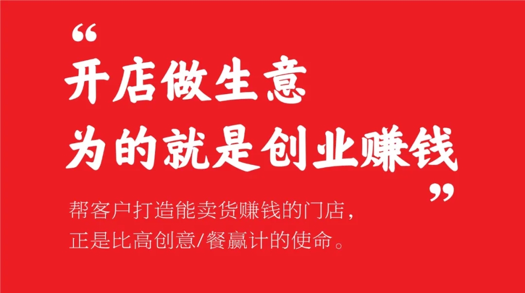 开店做生意,为的就是创业赚钱;帮客户打造能卖货赚钱的门店,正是比高创意/餐赢计的使命。