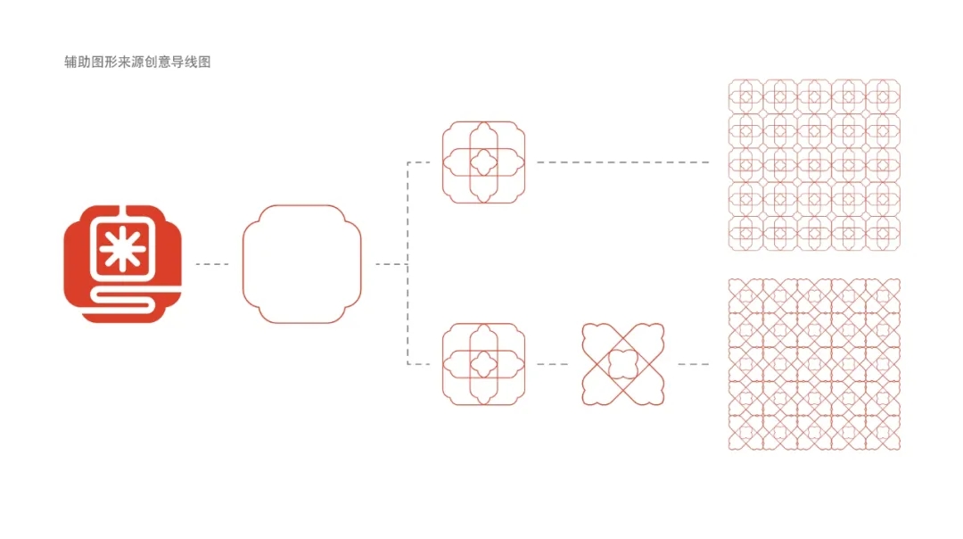 为配合LOGO和品牌色,全方位地解决品牌形象的系统化应用,我们结合广东传统文化,提炼出灯笼、十字花纹的辅助图形元素。前者形式简洁、易记易认、泛用性强,可与各种元素或色彩进行组合,作为品牌象征出现在多种情景;后者带传统气息、独特巧致,可以进行无限平铺排列,形成别具一格的景色,烘托品牌的南粤风情。这些辅助图形都能为粤合家欢缔造经典风格,让标准化、个性化的视觉调性得以延续和复制,有助于顾客增加亲切感和信任感,推动营销。