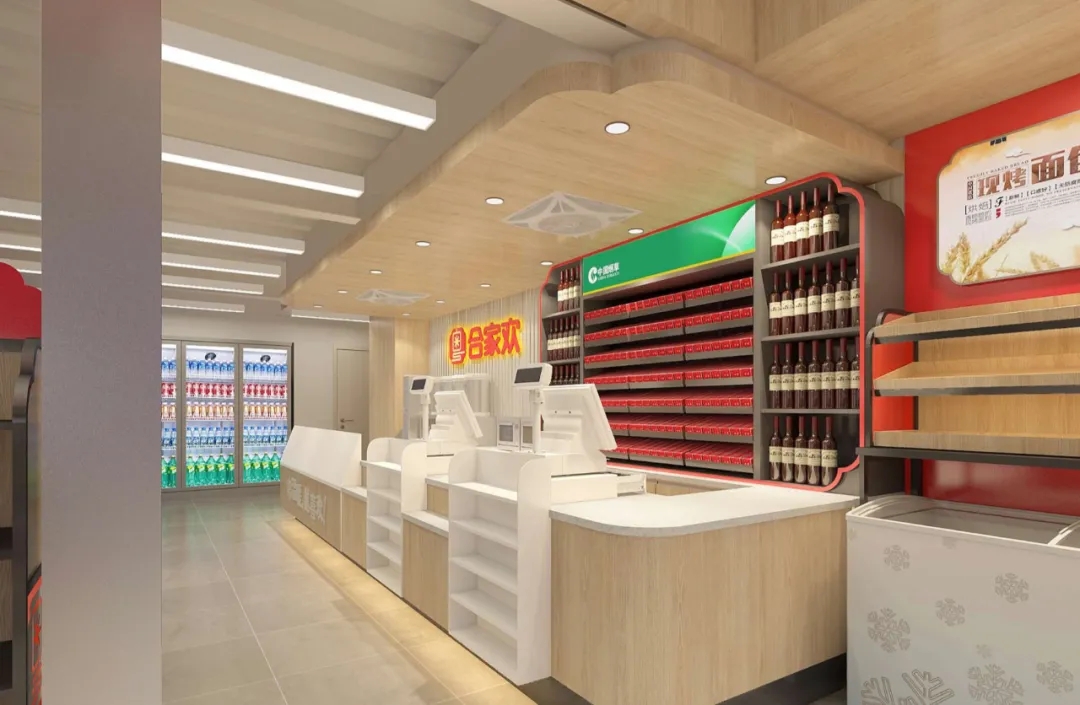 虽然粤合家欢的商业空间设计属于升级范畴,但品牌形象的全面更新,使其便利店形象也要随之而重新定义。为了让门店的外观效果、服务体验、运营效率和盈利能力等方面直接实现最大化,这次我们没有做太多繁杂细碎的“绣花活”,反倒利用减法思维,